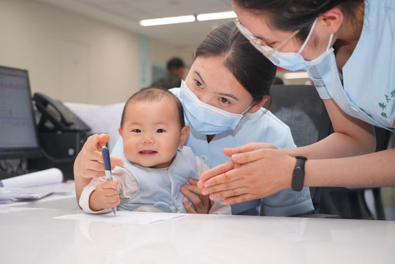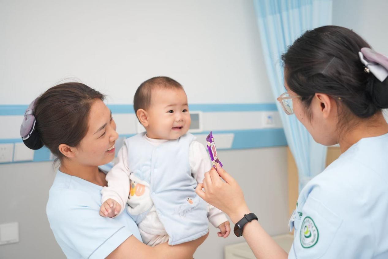 跨越千里,一位贵州患者为寻施海主任的诊疗,背着一岁幼童的背篓来到西安胃肠外科病房。没有约定,无需动员,胃肠外科的医护人员们自发组成了一支“临时妈妈团”。工作间隙,有人用玩具逗得孩子咯咯笑,有人细心冲好奶粉喂到孩子嘴边。白大褂的忙碌身影里,多了份温柔的牵挂,冰冷的病房也因这份善意,变成了孩子临时的“温暖小家”。