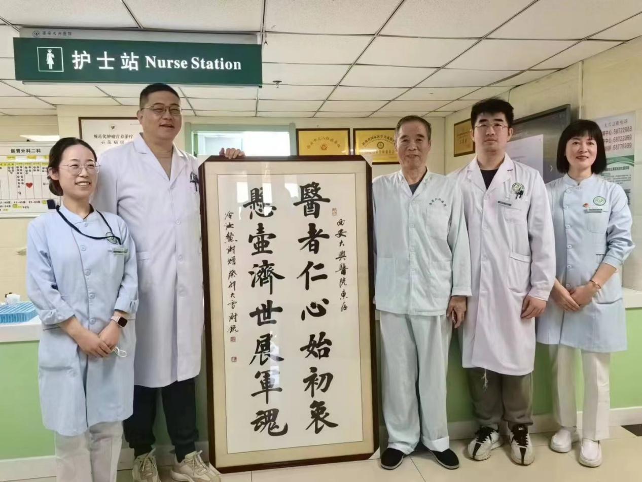 一位来自北京的首长,在确诊直肠癌后,辗转多家医院,得到的却是“无法保肛”的遗憾答案。经多方打听,找到了施海主任。主任通过改良Bacon手术方式成功为患者保肛,当手术成功、确认肛门功能得以保留的那一刻,患者悬了许久的心终于落地。出院前夕,这位不善言辞的首长,特意送上亲手准备的感谢字画——纸上笔墨凝情,不仅是对施海主任“妙手回春”的赞誉,更是对医者守护生命尊严的最深敬意。