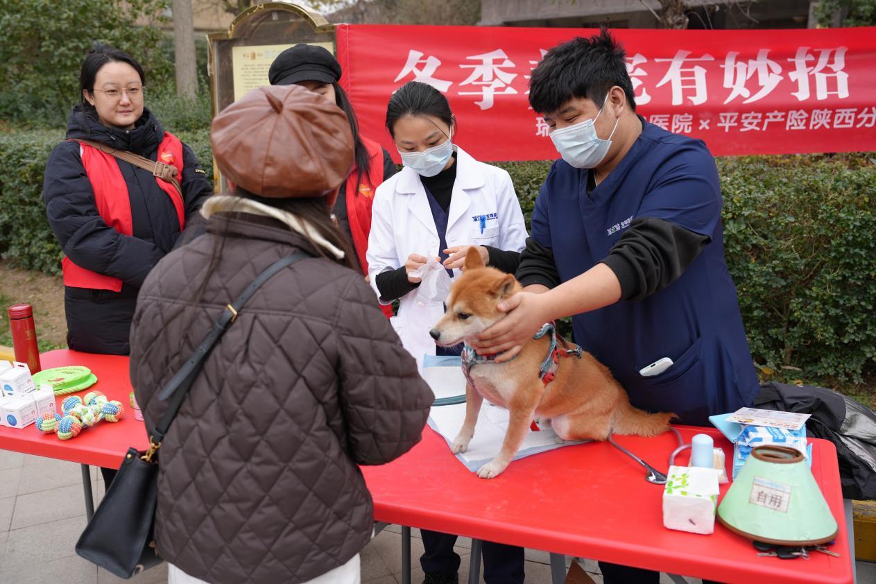 活动特别设置了宠物健康服务专区,邀请瑞诺威宠物医院的医生团队为小区居民的爱宠提供了免费体检服务,并详细讲解了冬季宠物常见病的预防和治疗方法。平安产险陕西分公司的工作人员为居民们科普了宠物保险的相关知识,并送上宠物罐头、玩具等爱心物资,为宠物健康保驾护航。许多居民纷纷点赞,表示通过这次活动,不仅让宠物得到了专业的体检,还学到了很多实用的养宠知识。