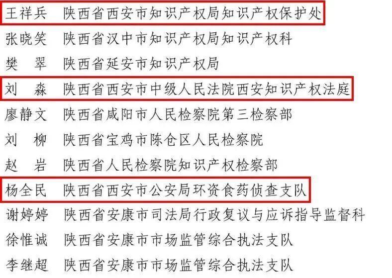 二、知识产权保护工作成绩突出个人(陕西省)