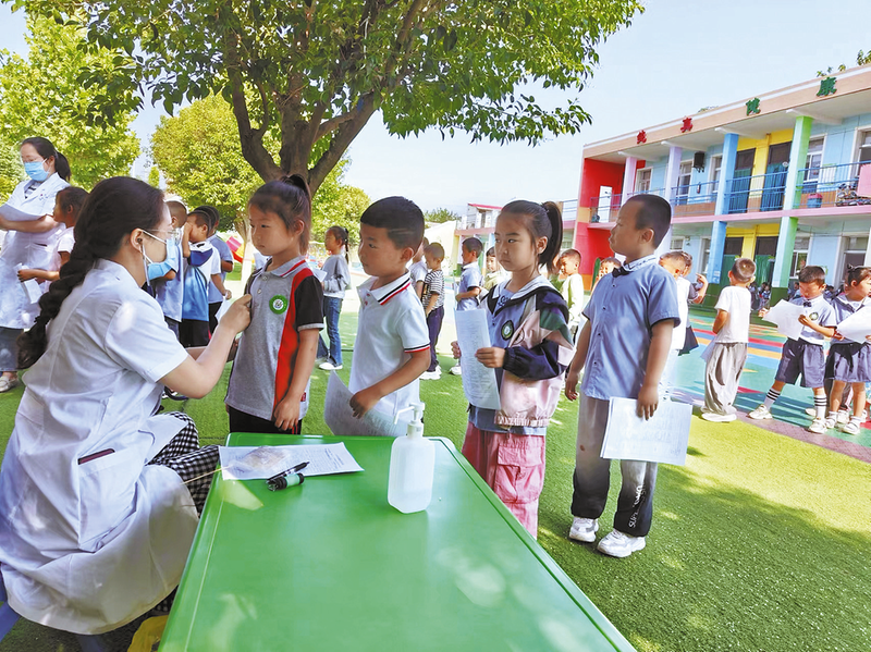 医务人员进校园为儿童体检(本版图片均为资料图片 由渭南市卫生健康委提供)