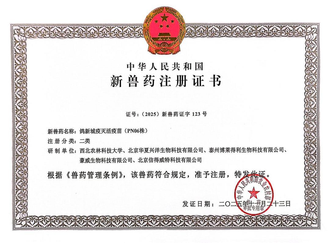 近日,西北农林科技大学教授王承宝团队研发的鸽新城疫灭活疫苗通过农业农村部新兽药登记,获颁国家二类新兽药证书。这一突破性成果填补了我国鸽用专用疫苗领域的市场空白,为破解鸽产业疫病防控痛点、推动行业高质量发展提供了关键技术支撑。