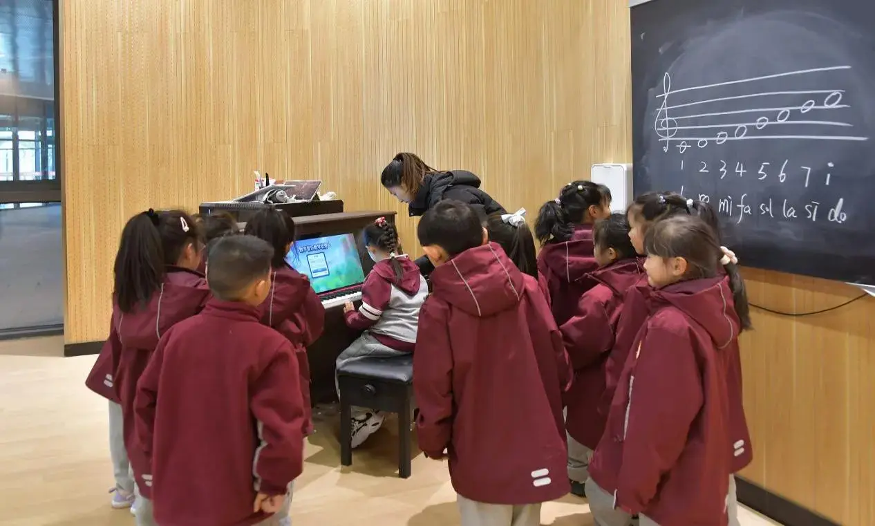 小学重实践,以生活化、体验化为核心,将学科知识与实践活动深度融合。例如,数学课堂用折纸做学具让知识直观可感,美术课以自然为主题链接艺术与生活,语文、科学借助冬至主题展演、学科融合科学实验等主题活动融合传统文化与科学探究,让学生在动手实践中感受知识的魅力。初中重多元发展,除夯实基础外,以校本选修与社团课程为延伸,打造个性化成长路径。校本选修课涵盖“动漫新国风”“数说数智训练营”“非遗工坊”等内容,社团活动设置心理剧团、编程等多元门类,让每个孩子都能找到兴趣点,在自主选择中发掘潜能。
