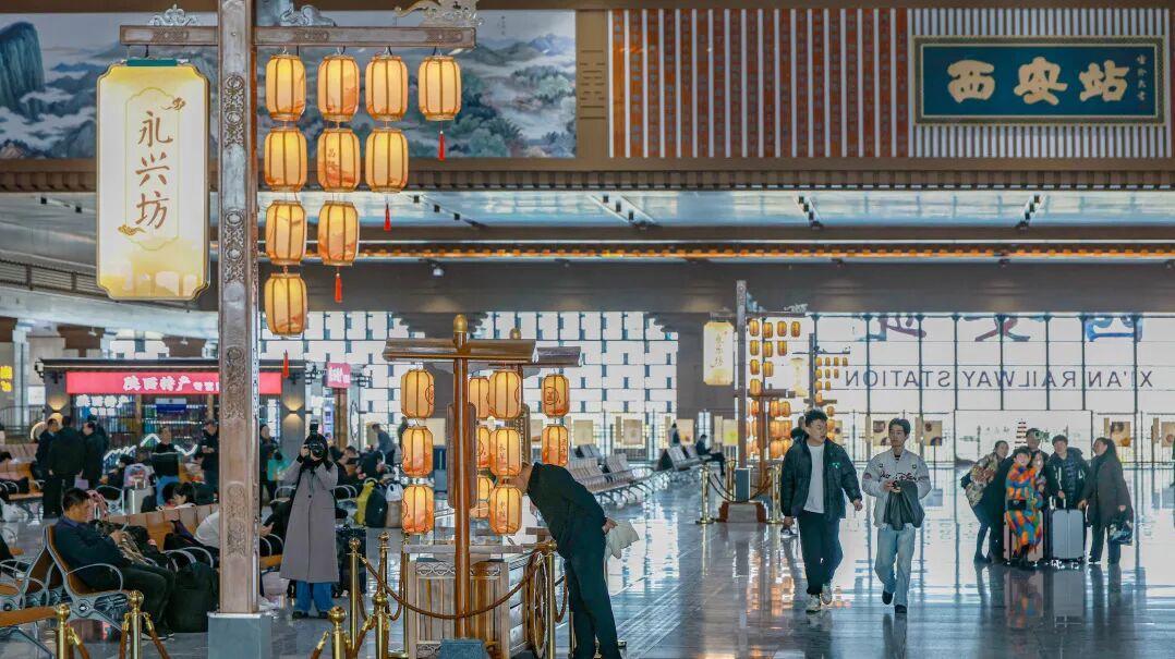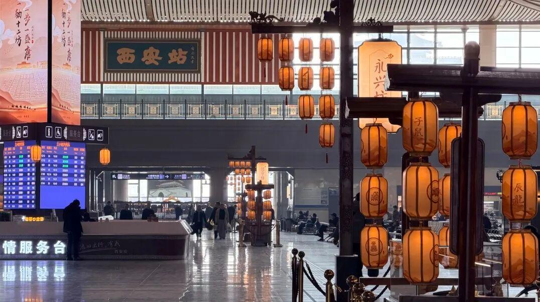 “我刚进站就被‘永兴坊’的灯牌吸引了!拍给朋友看,都以为我去逛唐街了!”近日,准备搭乘G662次列车的张女士,在西安站主题候车厅内,用手机记录下仿唐宫灯摇曳的光影,古典之美与现代之风相映成趣。