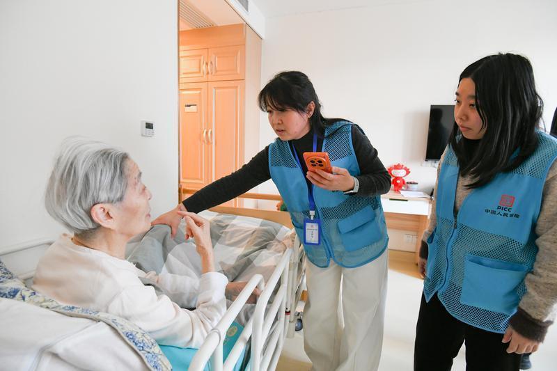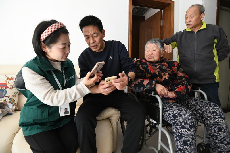 人保健康西安分公司的两位评估师正在对老人进行能力评估。