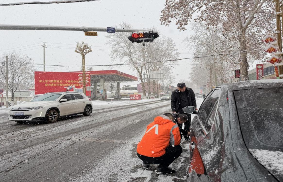 在车辆遭遇突发情况时,“平安橙”的身影总能及时出现。1月19日20时,西安市区内路面结冰导致一辆摩托车侧滑摔倒在路面,驾驶员轻微受伤,查勘员立即上前帮助扶起摩托车,并和其他行人协助将摩托车挪至安全区域,同时指挥交通防止二次事故发生。当晚22时,周边县域某车辆因电池亏电无法正常行驶,救援人员迅速赶到,使用搭电设备为车辆供电,同时仔细检查车辆状况,帮助车辆脱困。与此同时伴随着气温降低、路面结冰,追尾、侧滑等交通事故激增,平安产险陕西分公司理赔人员依然坚守一线,开展事故救援、现场查勘。从城市道路到乡村路段,数个服务瞬间,查勘人员始终以快速响应与暖心服务,筑牢车主出行安全,让车主在寒冬中感受到温暖和安心。