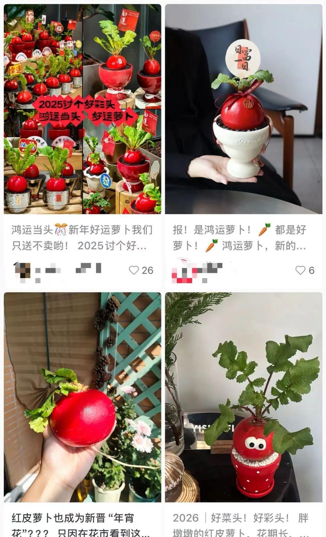 近年来,各种新奇的花花草草、小果子扎堆上市,年轻人选年宵花早就把“颜值”放在首位,花盆搭配更是精挑细选,就为了拿捏专属新春氛围感。就连萝卜、小柿子这些日常果蔬,都凭着高颜值、好养活,还能提供满满情绪价值的优势,成功挤进年轻人的年宵花清单,属实有点意外又合理。