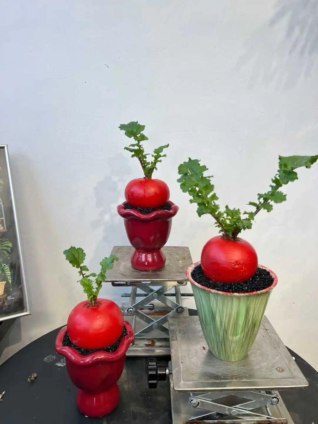 “红菜头,图的就是‘好彩头’的寓意,买回去一年都红红火火!”林女士介绍,因为做了染色和封蜡处理,这些萝卜比菜场里的更红更圆,种好的盆栽价格在40元左右,单独购买萝卜是15元。