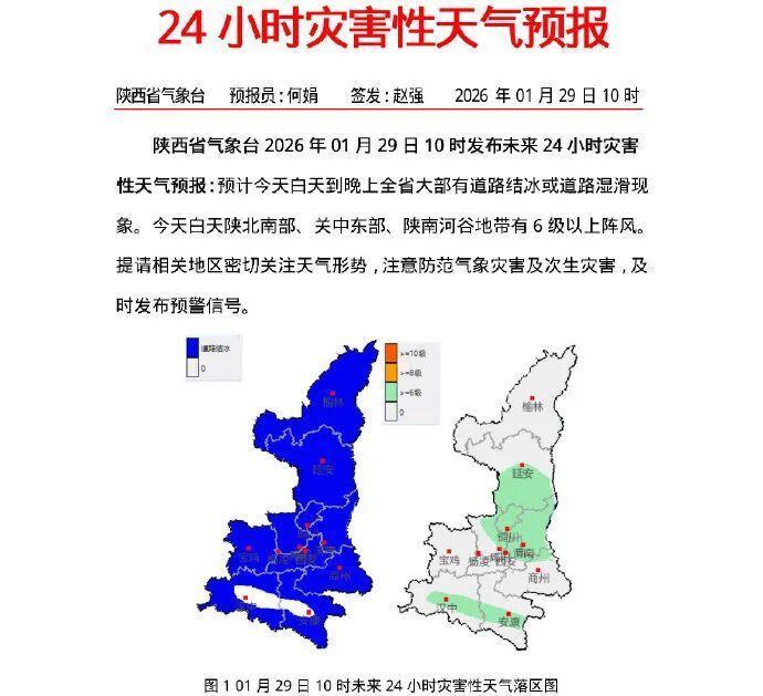 受高空槽东移及东路回流冷空气影响,今天(1月29日)陕西有一次大范围雨雪天气过程,陕西省气象台10时发布未来24小时灾害性天气预报。