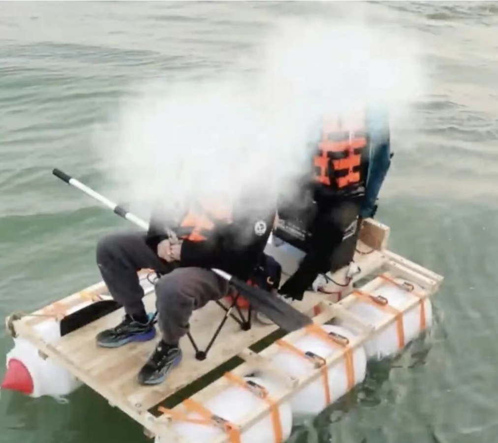 他带着儿子和“自制艇”