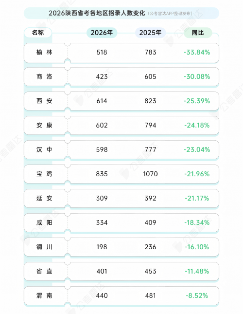 原标题:缩招22.7%,竞争加剧——2026年陕西省考大数据解读