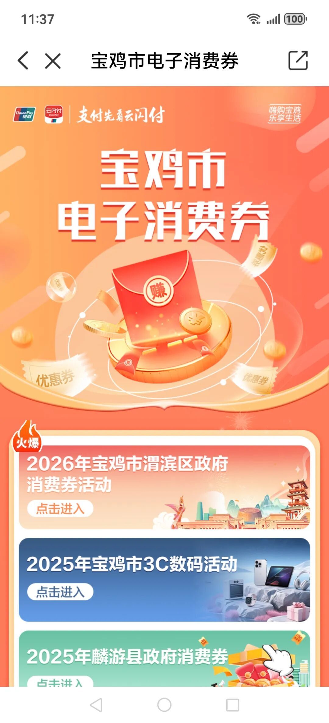 第②步:下滑找到各地市及区县政府消费券 点击宝鸡市