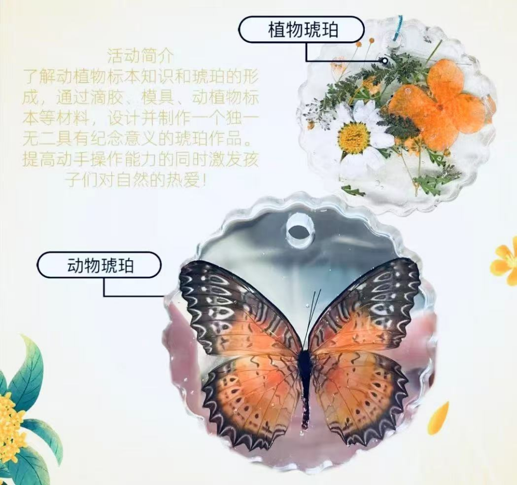 向青少年讲解动植物标本知识和琥珀的形成,通过手工制作直观了解琥珀的形成过程,提高青少年的动手操作能力,激发青少年对自然科学的热爱!