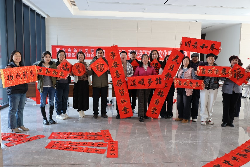 2月10日,西安高新区“我们的节日•春节”文化惠民机关行活动在丝路创智谷5号楼一楼大厅圆满举办。活动以笔墨寄情、春联送福的形式,将浓浓的年味与真挚的祝福送到高新区管委会机关干部和园区职工身边,进一步营造欢乐、喜庆、文明、祥和的新春氛围。