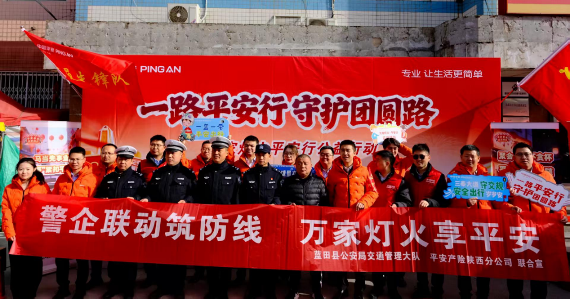 由平安产险陕西分公司与蓝田县公安局交通管理大队联合主办的“万家灯火平安行”公益行动走进焦岱大集,以“一路平安行 守护团圆路”为主题,将交通安全知识送到群众家门口,用实际行动守护万家团圆路。