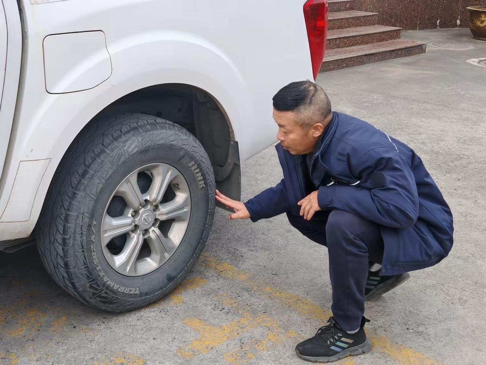 马涛搓了搓冻得发僵的双手,俯身检查轮胎胎压,手电筒的光束在结霜的花纹间停留片刻——“胎缝里卡了颗石子,得抠出来。”他从口袋摸出半截磨亮的钩子,蹲下身仔细清理。这是马涛春运日复一日的开端:与检修车为伴,与秦岭山路为盟,守护着107个山间车站的春运畅通。