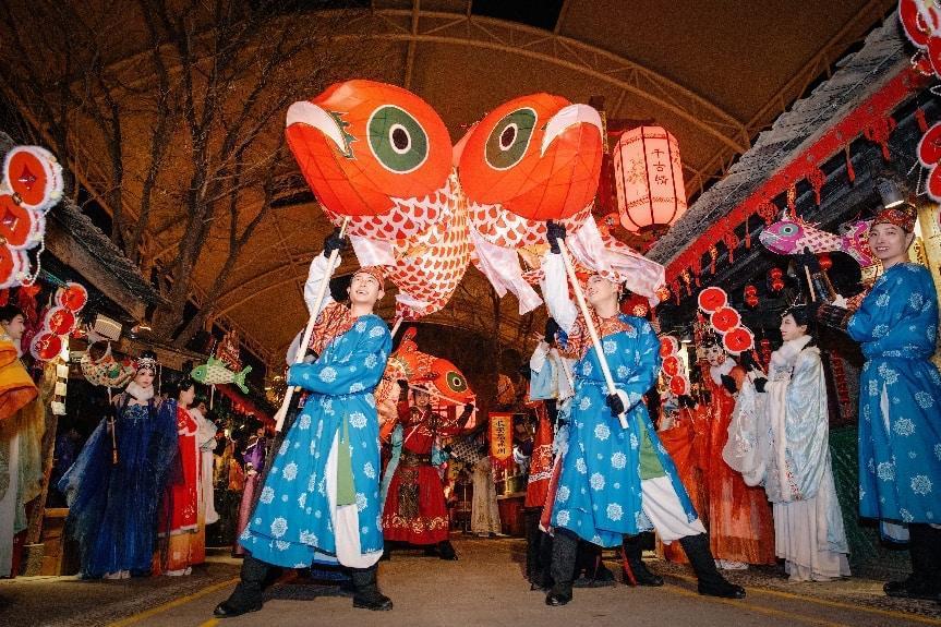 放飞天灯、鱼灯巡游……在西安千古情景区,记者沉浸式体验以“穿越长安,福满新年”为主题的特色活动。
