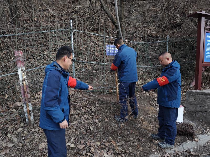 路过一片核心保护区,他发现一段隔离围网被积雪压塌了一个角。随行的几个人弯下腰,用携带的铁丝和工具,一点点把破损的地方重新绑紧、加固。刺骨的寒风透过手套,手指冻僵硬了,他们就放在嘴边哈一口热气,搓一搓,接着干。