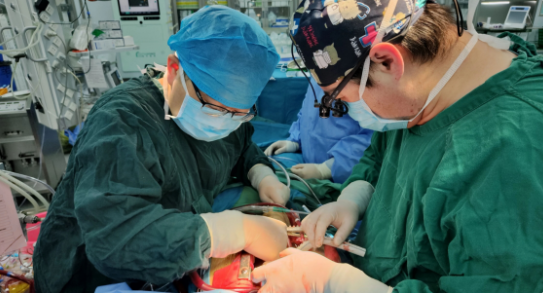 手术当日,患者突发心跳呼吸骤停,医护团队立即实施胸外按压、急诊开胸、心内按压并建立体外循环,经紧急抢救后手术顺利完成。但由于病情过重,患者术后无法脱离体外循环,团队随即启动ECMO(体外膜肺氧合)桥接治疗,为患者建立生命支持,并转入ICU进行后续监护与救治。