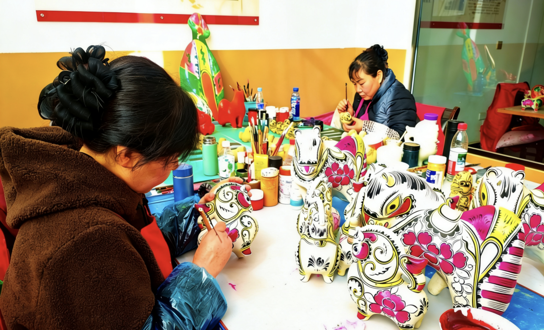 如果说凤翔刺绣的火爆印证了非遗文创的市场潜力,那么六营泥塑村的“一马当先”,则展现了传统技艺产业化发展的强劲动能。“最近泥塑马卖得太火爆了,订单排得满满的,好多人晚上还在炕头加班做马呢!”六营村党总支书记廖卫军介绍,春节前泥塑马订单就达1300多万元,最远的一批发往英国。村里设计的“非遗小镇 六营有礼”礼盒,将泥塑与土特产打包销售,春节期间售出13000多份。
