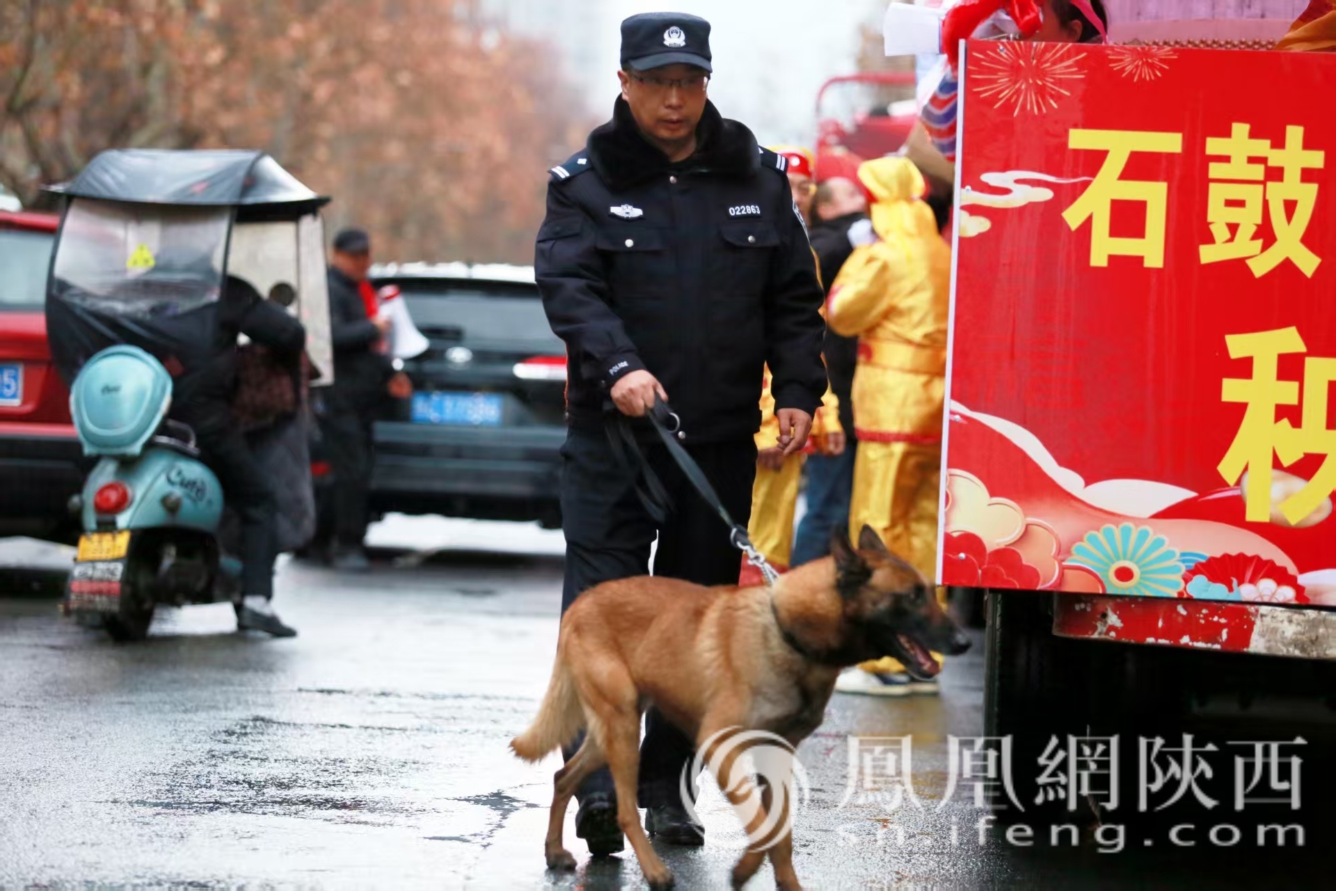 3月1日,春雨绵绵,渭滨区2026年“龙腾狮跃闹新春·鼓韵渭滨展宏图”社火游演在经二路沿线精彩上演。宝鸡市公安局高度重视社火游演安保工作,渭滨分局、治安支队、交管支队提前谋划、周密部署,全警在岗、硬核护航,确保民俗盛会安全有序。