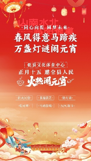 记者了解到,正月十五元宵节当天,活动将迎来规模空前的收官之作。主办方精心策划的“大型游园闹元宵”系列活动将从下午持续至夜间,为乾县市民献上一场视听与文化科技交融的元宵盛宴。