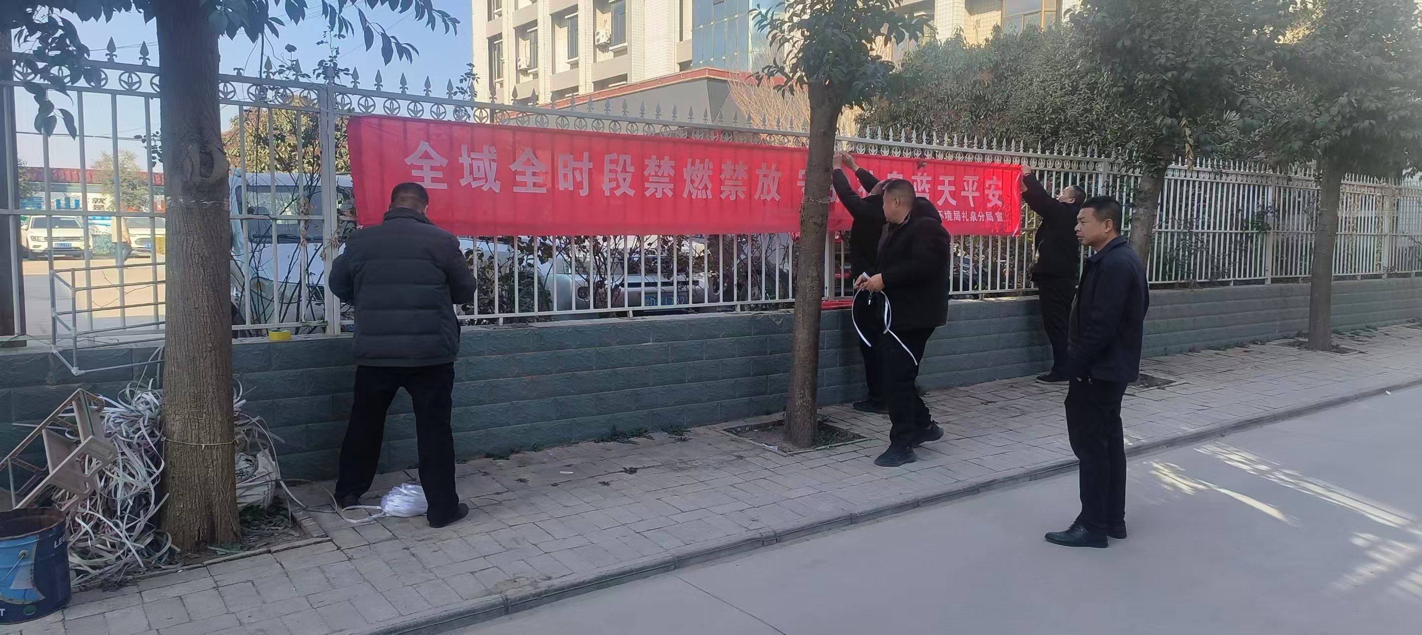 新春佳节将至,为持续改善辖区空气质量,有效防范安全事故,倡导文明、绿色、安全过节新风尚,近日,咸阳市生态环境局礼泉分局由班子成员带队,组织干部职工深入城区多个居民小区,集中开展烟花爆竹禁燃禁放主题宣传活动,以实际行动守护群众平安幸福年。