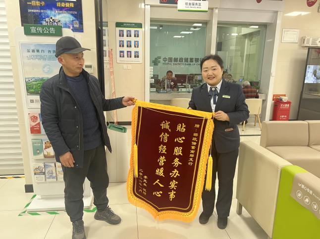 “真是太感谢你们了!我自己都没发现钱没存成功,你们不仅细心找到,还主动联系我办理入账,这份责任心太让人感动了!”近日,客户李先生将一面印写着“贴心服务办实事,诚信经营暖人心”的锦旗,郑重送到邮储银行南郑区支行营业主管徐晓娟手中,并用朴素而真挚的言语表达着对支行员工的认可与感激。