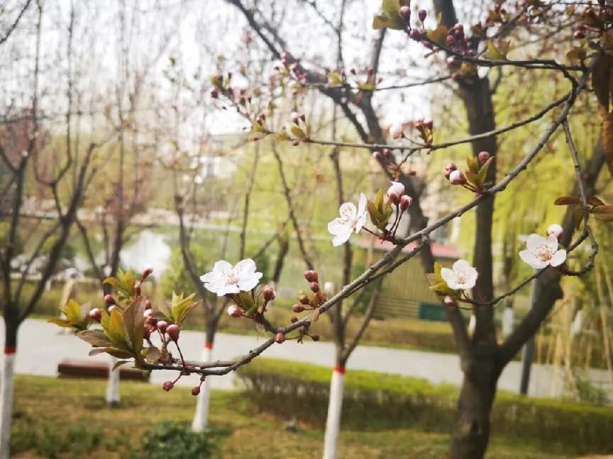 梁家滩运动公园:粉黛、梅花、樱花、海棠、夹竹桃、木槿、碧桃;