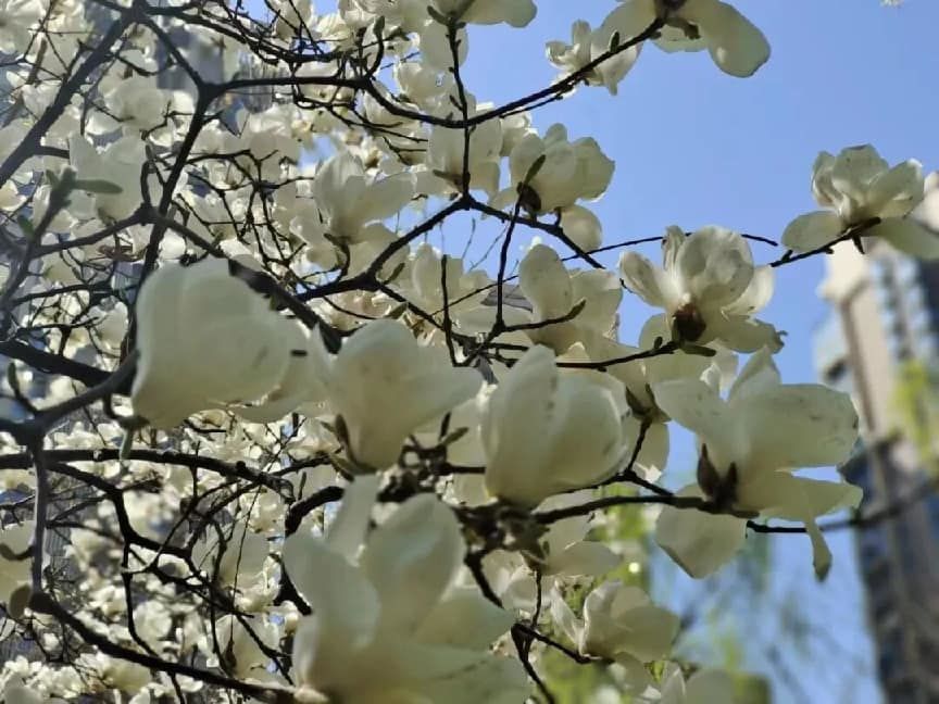 玉兰:属木兰科木兰属落叶乔木,因其外形像莲花,“色白微碧、香味似兰”而得名,花期在2-3月。