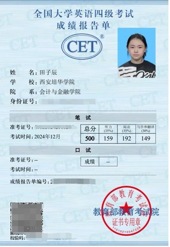 英语学习路上,田子辰是大家的“小老师”。她坚持每天背诵50个单词、进行听力精练,累计完成30余套真题,最终以500分、504分通过英语四六级考试。她还带着室友张婧洁一起制定提分计划,每天练习口语、复盘错题、互相批改作文,帮助张婧洁的六级成绩从359分提升到451分。