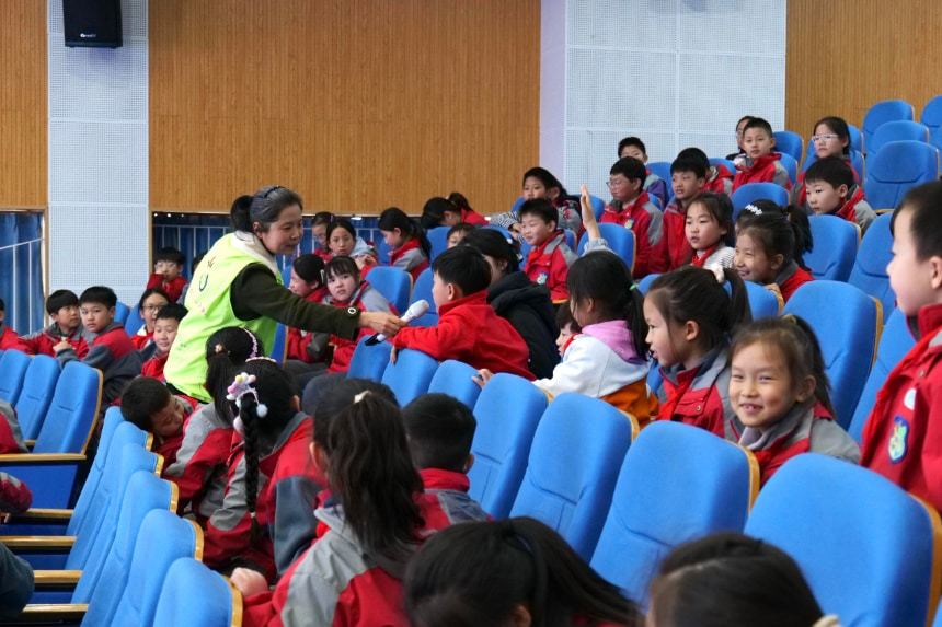 活动在学校室内礼堂开展,垃圾分类讲师以“开学第一课垃圾分类学习”为主题,结合校园生活实际,用通俗易懂的语言讲解旧书本、墨盒、包装袋、厨余垃圾等校园常见垃圾的分类方法。现场播放的垃圾分类公益短片,更让学生直观了解分类的重要意义。随后的互动环节更是点燃了孩子们的热情,垃圾卡片配对、模拟垃圾桶投放、垃圾分类大转盘等趣味游戏,让孩子们化身“分类小能手”,答对的孩子收获了环保袋、笔记本等精美礼品,在欢声笑语中巩固了垃圾分类知识。