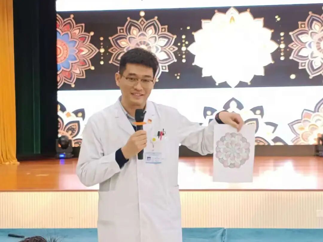 轻柔的背景音乐缓缓流淌,绘画疗愈环节正式开启。本次活动设置曼陀罗绘画、情绪自由涂鸦、科室团体共创三大环节,由刘敏主任现场悉心指导示范,全程秉持“不评判、不比较、不打分” 原则,以 “放松、表达、自愈” 为核心,让每一位参与者都能无负担地沉浸其中,尽情释放内心情绪。