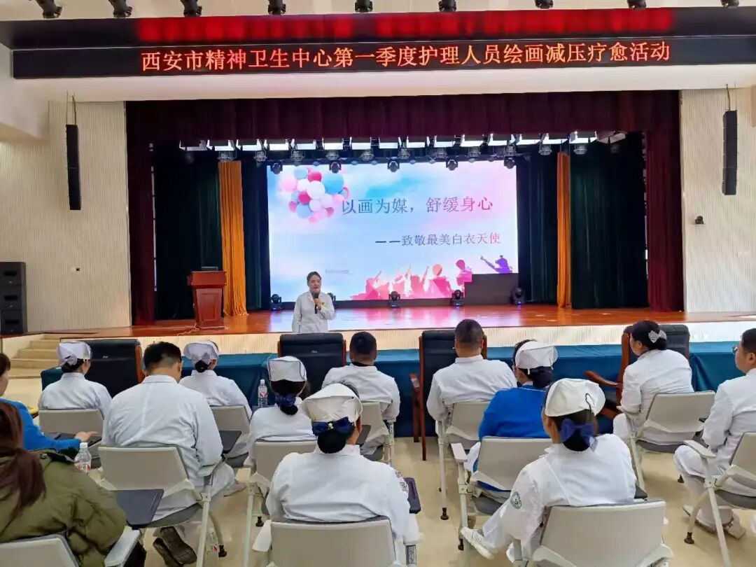 春风送暖,芳华绽放。为切实关心关爱临床一线护理人员身心健康,有效缓解高强度护理工作带来的压力,2026年3月12日下午,陕西省精神卫生中心·西安市精神卫生中心护理部、工会联合在门诊三楼多功能厅,举办“以画为媒,舒缓身心”第一季度护理人员绘画减压疗愈活动。护理部主任刘敏、副主任翟欢、各科室护士长及50余名护理人员参加活动,大家暂别临床忙碌,在艺术创作中舒缓情绪、疗愈心灵。