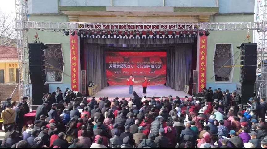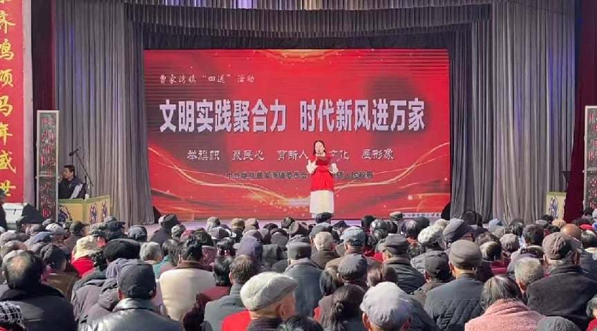 戏台未开锣,宣讲先暖场。戏曲开演前的“黄金10分钟”,理论文艺宣讲准时开讲。县新时代文明实践宣讲员紧扣群众关切,用群众喜闻乐见的快板、演唱等形式,把党的创新理论、移风易俗、文明新风等内容,转化为群众听得懂、记得住、用得上的实在话。快板《抵制高额彩礼,倡树文明新风》节奏明快、句句戳心,倡导低彩礼、不攀比,文明嫁娶,摒弃陈规陋习;宣讲《践行 “五礼” 家风 厚植乡风文明》 情真意切,引导群众传承优良家风、涵养文明乡风;歌曲《灯火里的中国》 歌声悠扬,唱出国泰民安、幸福生活。文艺润心、宣讲铸魂,让“大道理”接上“地气”、融入“烟火气”。