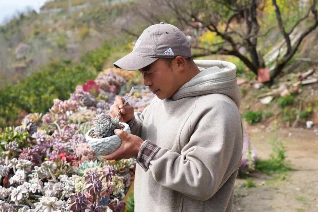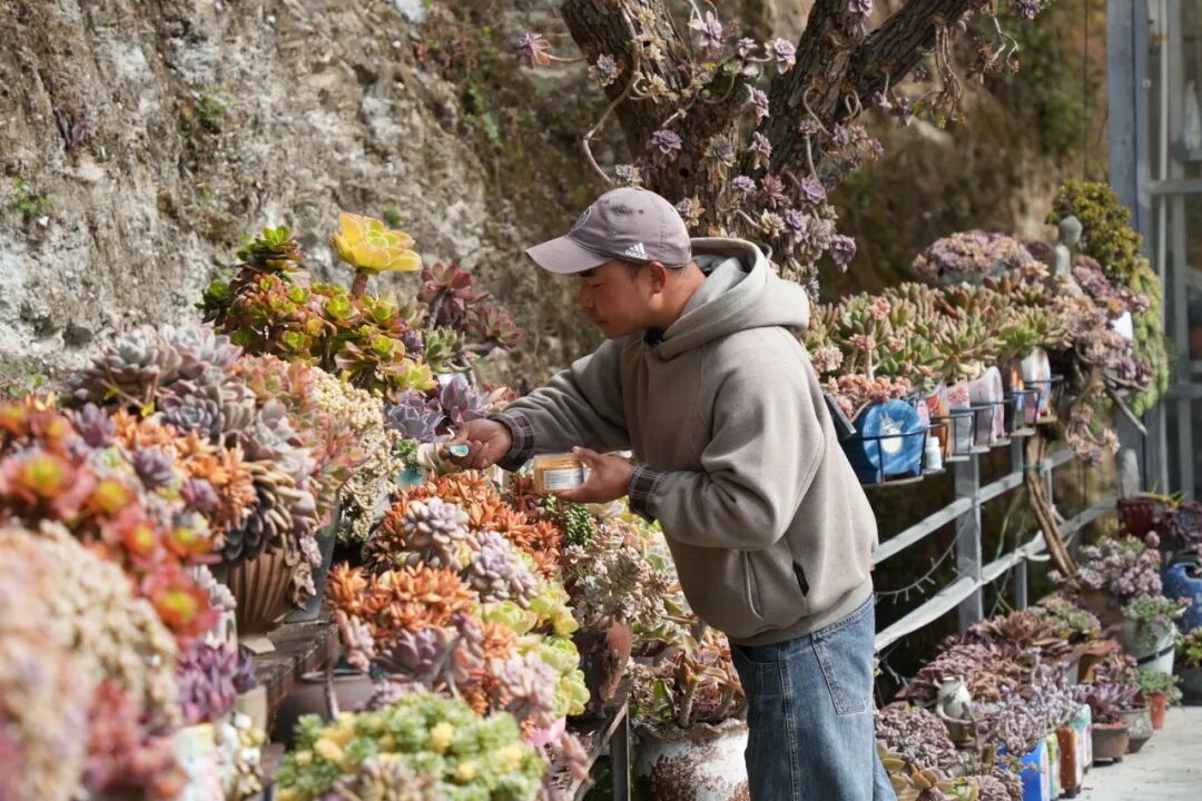 这是李坤返乡创业的第四个年头。从机械设计师到乡村“多肉能手”,他以一株株小巧的多肉为起点,不仅闯出了一条特色创业路,也悄然带动了家乡的活力。