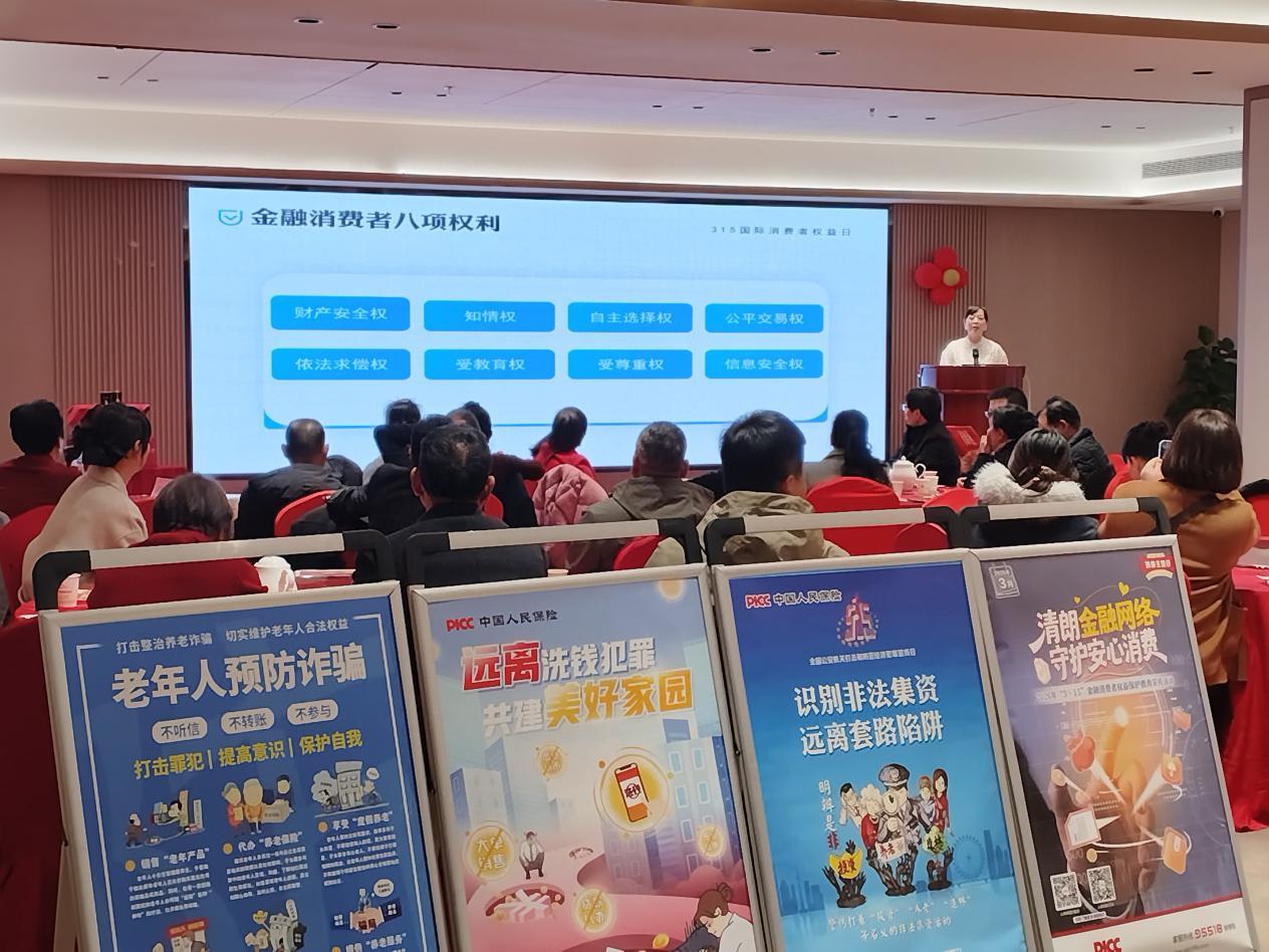 为深入贯彻落实金融消费者权益保护工作要求,切实提升公众金融风险防范意识,2026年3月14日,人保寿险商洛市分公司在商洛市欣源酒店举办以“清朗金融网络 守护安心消费”为主题的“3·15”金融消费者权益保护宣传活动。活动吸引了公司新老客户30余人积极参与。