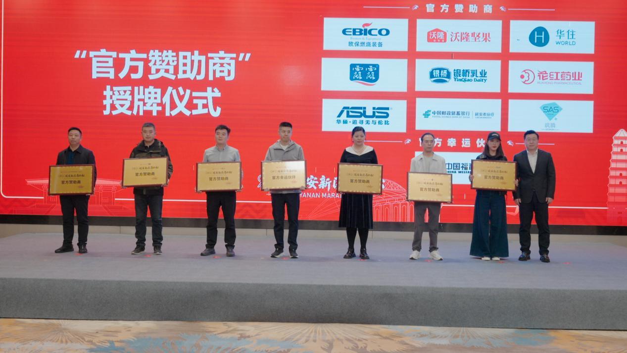 本届“延马”受到官方合作伙伴特步、中国农业银行延安分行、中国人民保险、农夫山泉、延长石油、延安(川云)酸菜面,官方赞助商迈胜、华润雪花啤酒、广汽传祺、胖婶沾沾、汤达人、海氏海诺、华熙一美、花椒世家、科俊益悦、欧宝燃烧器、沃隆坚果、华住集团、露露、银桥乳业、花红药业、华硕、中国邮政储蓄银行延安分行、飒瞬,官方幸运伙伴中国福利彩票,官方供应商舒途运动、益禾餐饮、吴起县羊肉剁荞面行业服务协会、柚木烘焙的鼎力支持。组委会为各合作伙伴、赞助商、幸运伙伴授牌,感谢各方企业的信任相伴与倾情助力,为赛事注入强劲动力。