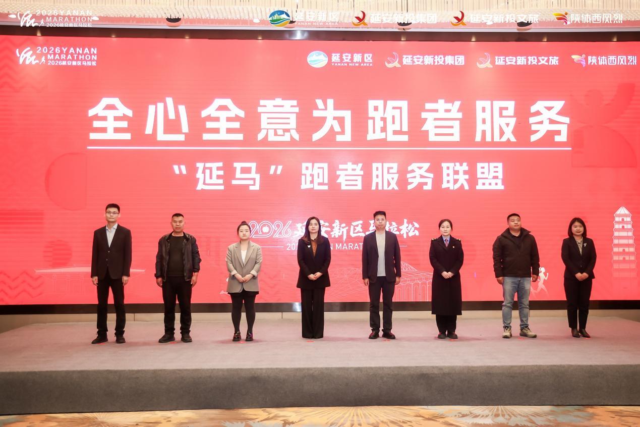 在发布会现场,“延马跑者服务联盟”正式成立。陕旅集团延安公司、陕文投延安公司、延旅集团、滴滴出行、延安机场有限公司、延安车务段延安车站、延安新区公交公司、鲁艺花园酒店、延安文化交流中心等单位代表共同登台,携手为跑者打造从抵达、住宿、出行到参赛的全链条暖心保障。