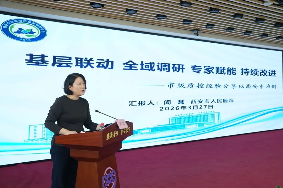 西安市人民医院药学部主任闵慧代表市临床用药质控中心,作了题为《如何做好市级质控—以西安市药事管理质控为例》的报告,梳理了2025年市级质控工作的推进情况,部署2026年重点工作。