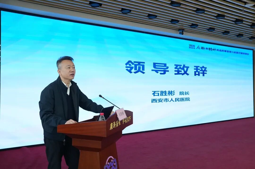 会议紧扣药事质控核心任务,聚焦麻精药品管理新规与质控指标的系统解读,旨在进一步规范全市医疗机构麻精药品管理流程,提升临床合理用药水平。会议同时对2025年质控中心年度工作做出全面总结,并部署2026年西安市药事质控重点工作。陕西省药事管理专业医疗质量控制中心王婧雯主任,西安市人民医院(西安市第四医院)院长石胜彬、副院长马建全等出席本次会议;市质控中心委员、各区县质控中心主任,及西安市医疗机构200余名药师参加会议及培训。