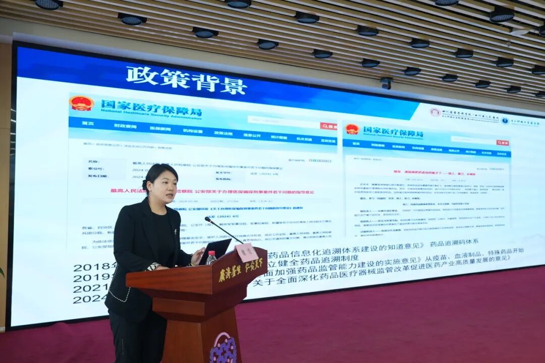 四川省人民医院熊萱副主任药师以《医疗机构药品追溯码采集工作实践探讨与思考》为主题,结合实际案例,分享了药品追溯体系建设的前沿经验与思考,为我市推进药品管理的信息化、精准化提供了有益的借鉴。