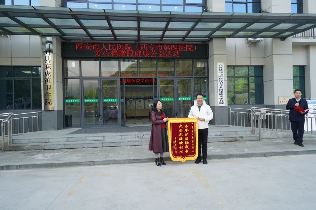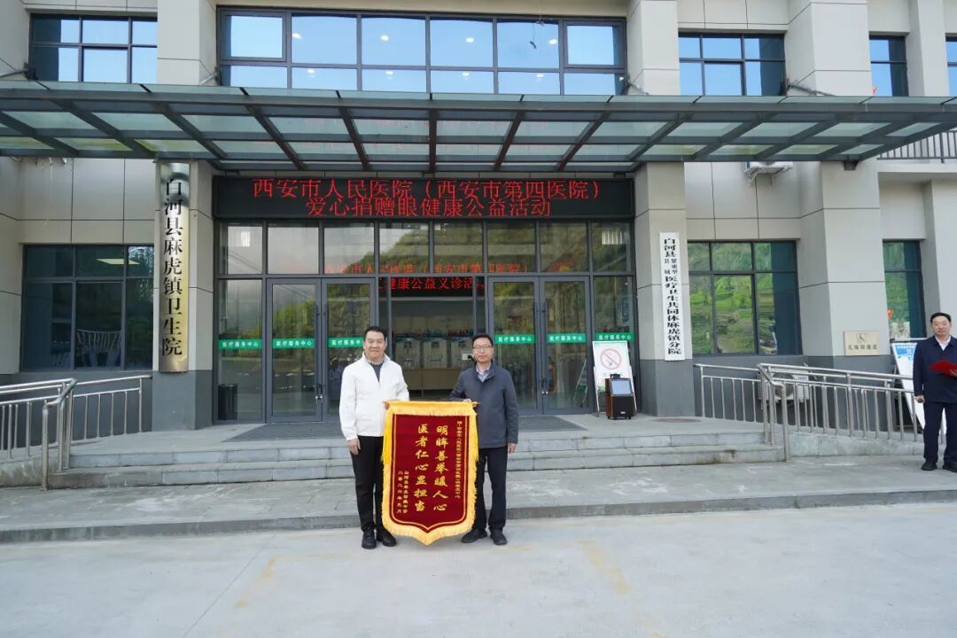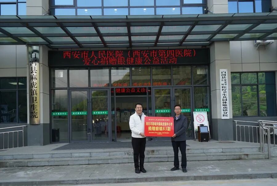 4月1日上午,西安市人民医院(西安市第四医院)联合西安市慈善会,在麻虎镇卫生院开展“明眸皓齿”行动暨眼视光健康科普活动。现场为城关镇、麻虎镇83名中小学生捐赠定制公益眼镜,受赠学校代表向医院赠送锦旗表达谢意。