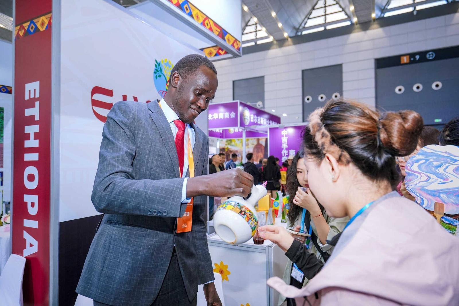 还未走近埃塞俄比亚展台,一股浓郁醇厚的咖啡香气便已扑鼻而来。展台中央,一股混合着焦糖与果木的浓香弥漫开来。工作人员热情地招呼着围观的人群:“这是来自咖啡故乡的味道!”“埃塞俄比亚咖啡种植历史悠久,是本国最大的出口商品。中国目前是埃塞俄比亚咖啡第四大进口国,市场潜力巨大。”现场工作人员一边递上咖啡,一边向记者介绍,“我们这次参展,不仅想让大家了解我们的咖啡文化,更希望在中国这个巨大的市场中寻找到更多的合作伙伴与渠道商。”在这里,丝路的交流,因一杯咖啡而变得具体、温暖且充满商机。