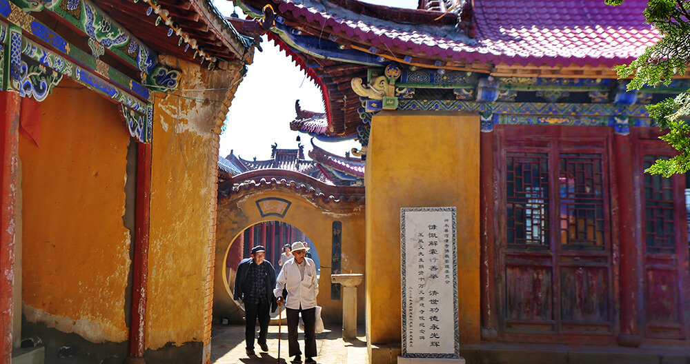 在二郎山前后相近的山脊上,就地势分布着100多座殿、庙、亭、阁,如八仙洞、地藏洞、三身佛洞、浩然亭、二郎庙、诸神殿、三教殿、玉皇阁、娘娘庙等。这些古建筑疏密相间,布局错落,其中保留有完整的石刻九龙照壁和石刻卷顶,以及部分壁画、碑石、题字等。