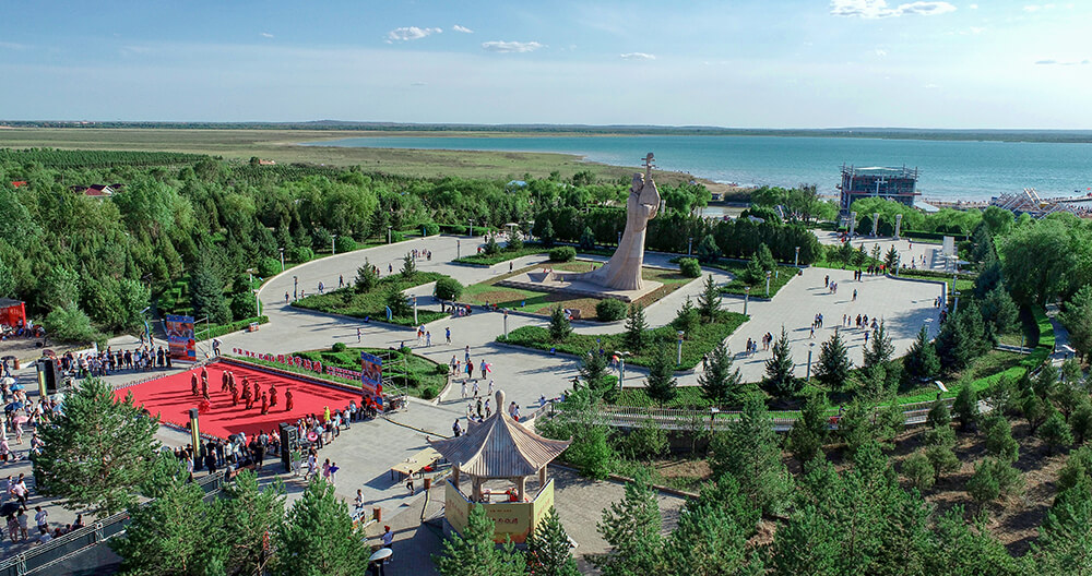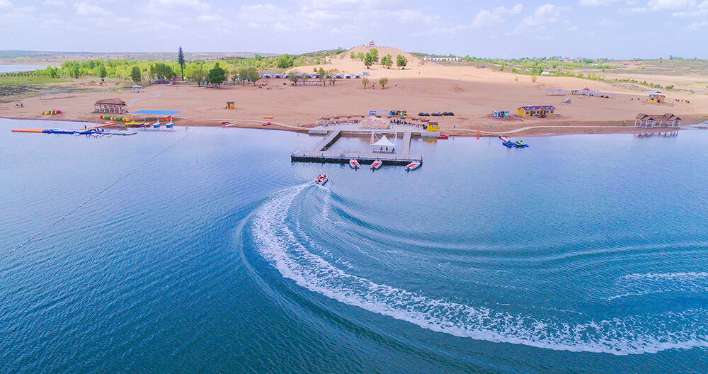 “塞上明珠”红碱淖是全国最大的沙漠淡水湖,被评为国家级水利风景名胜区、国家级自然保护区和4A级景区。红碱淖国家级自然保护区位于神木市尔林兔镇,毛乌素沙漠边缘,总面积10768公顷,水域面积35平方公里。这里融草原风光与江南泽国景象于一体,东侧有天然牧场尔林兔草原,水草丰盛,牛羊成群。南北两侧以沙丘、滩地为主,滩地上有以沙柳为主的大面积固沙防风林带,沙丘多已固定。