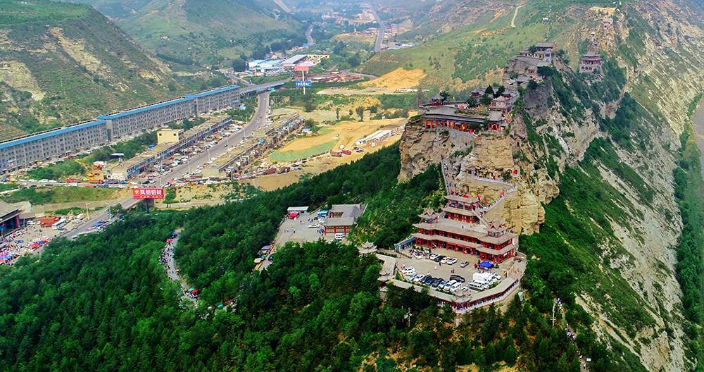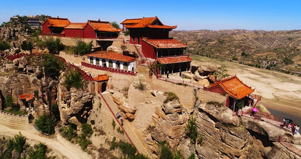 九龙山位于陕西省神木市,市城东面东山(又名九龙山),九龙山庙群整体建筑依雄踞险、虎踞龙蟠,既有雄伟宏大磅礴之势,又有绝壁悬崖临空欲坠之险。其庙殿亭廊雕梁画栋、飞檐脊兽和石窟造像以及大量的雕塑绘画碑碣的精工细做均有较高的艺术和历史价值。著名的自然景观有“龙眼透日”、“香炉伴月”。