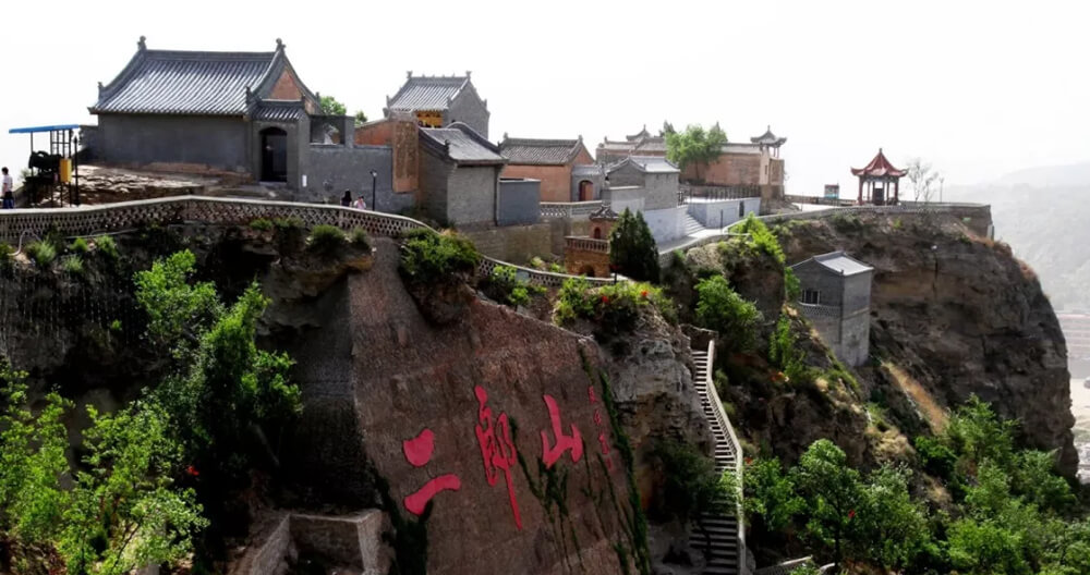 神木二郎山俗称西山,也称“驼峰山”,位于市区窟野河西岸,海拔1082米。二郎山山势蜿蜒,巍峨险峻。窟野河、秃尾河流于山前,古长城穿行于山后。西边沙石相间,果林成片,东面石壁陡峭,松柏挺立。明代正德十三年(1518年),武宗皇帝曾来此山,他观山状如似笔架,所以将此山御之曰:“笔架山”。后来,文人学士来此,有观其貌似驼峰,故多称“驼峰山”。